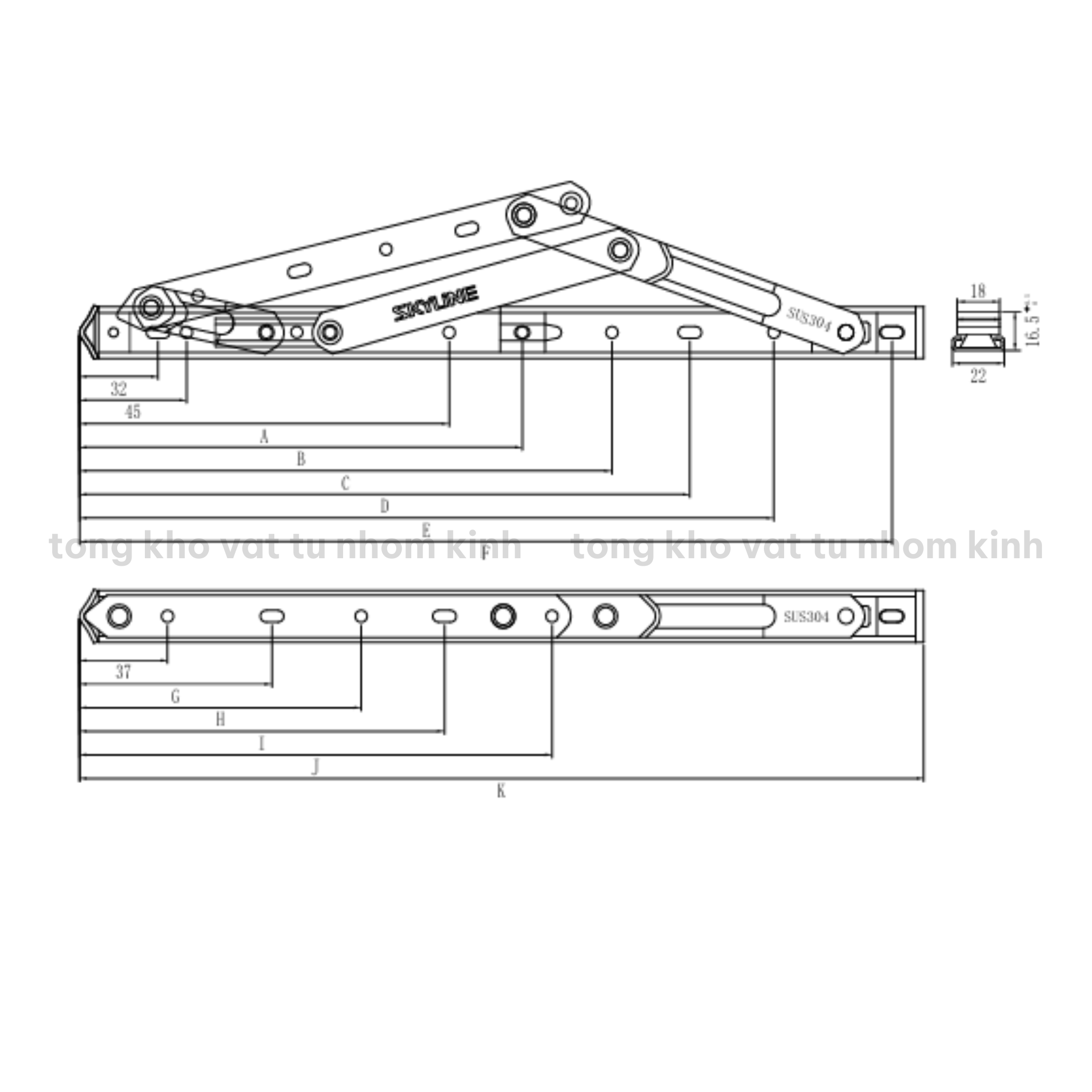 Bản lề chữ A mở hất SKYLINE SK22A (12 / 14 / 16)