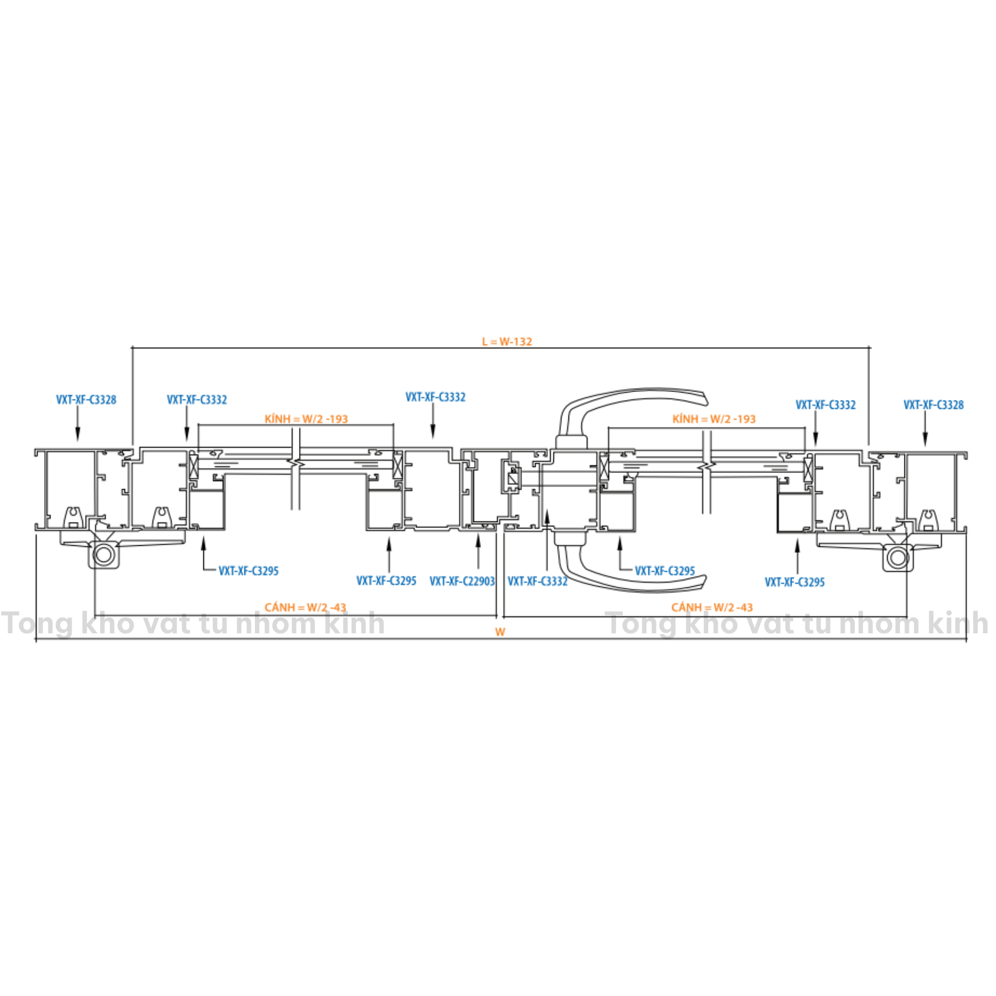 CỬA ĐI 2 CÁNH MỞ TRONG HỆ 55