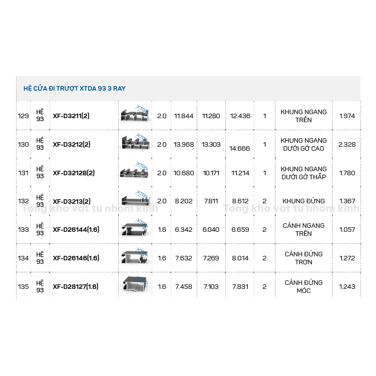 HỆ CỬA ĐI TRƯỢT XTDA 93 3 RAY