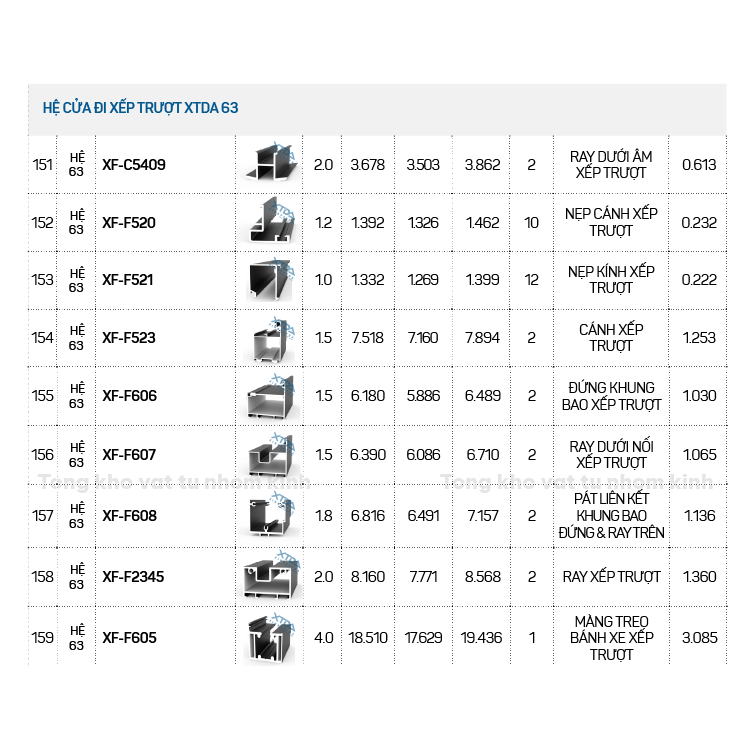 HỆ CỬA ĐI XẾP TRƯỢT XTDA 63