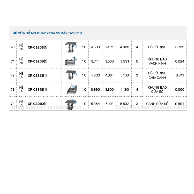 HỆ CỬA SỔ MỞ QUAY XTDA 55 DÀY T=1.0MM