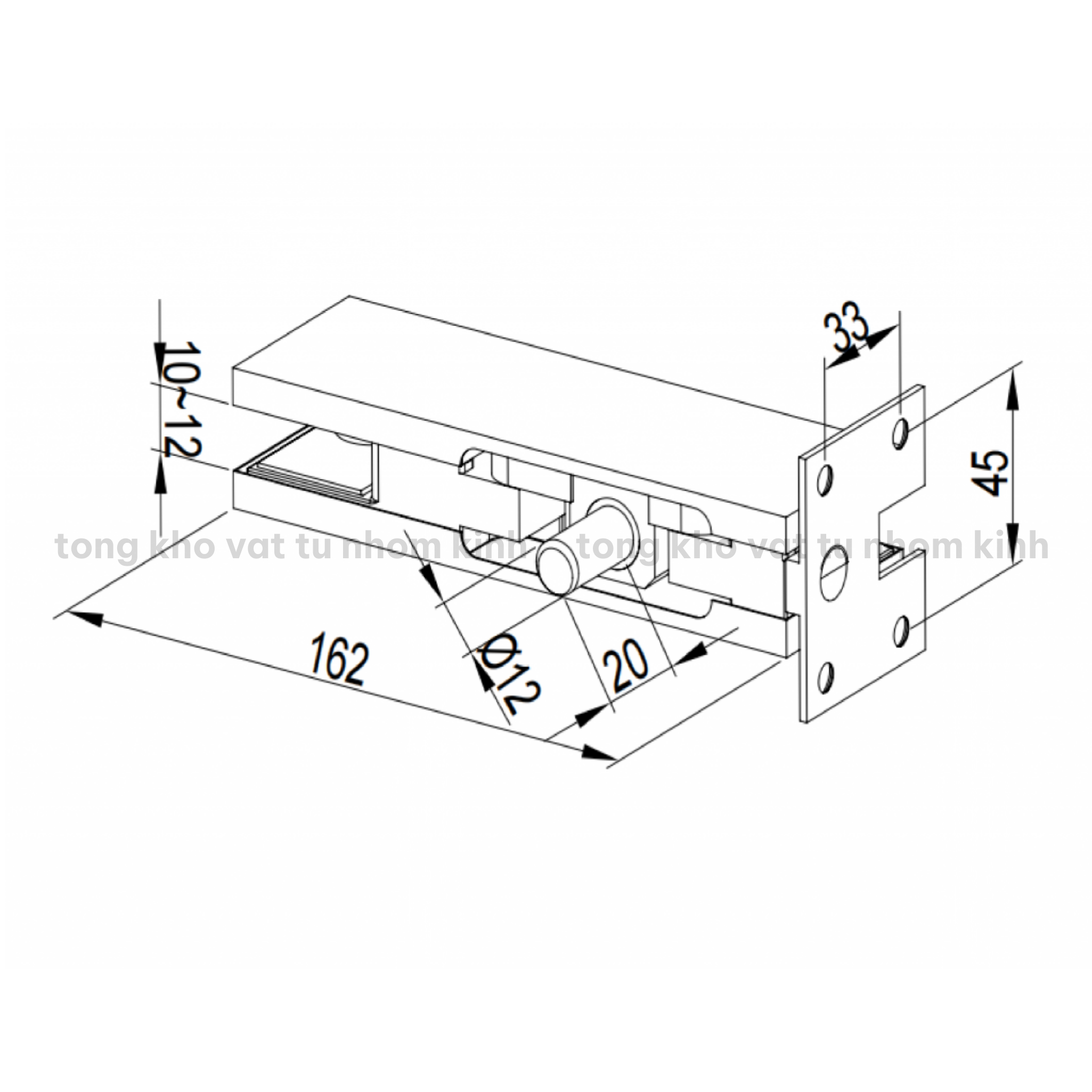 - Lắp đặt trên tấm kính fix phía trên và cần được khoét kính, sử dụng kết hợp với kẹp kính hệ 100kg