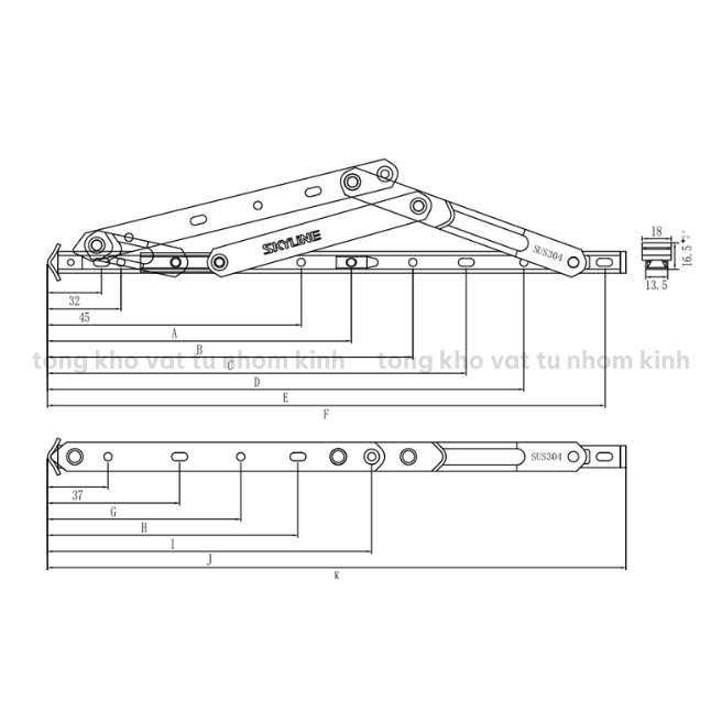 Tay chống ma sát cửa sổ SKYLINE SK13.5A (12 / 14 / 16)